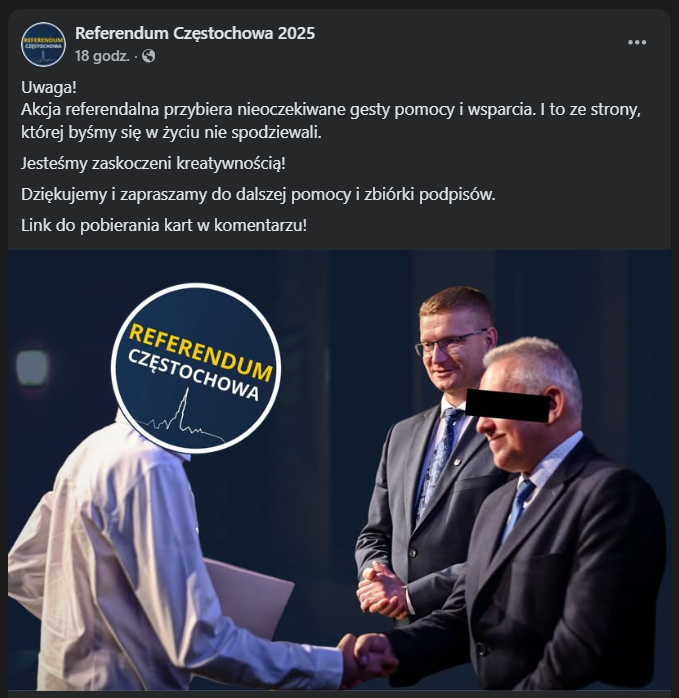 Zatrzymany radny wywodzi się z Lewicy, a co za tym idzie oczywiście i z koalicji rządzącej miastem od lat. Takie sprawy nadszarpują jej wizerunek, szczególnie, w sytuacji, gdy trwa zbiórka podpisów pod wnioskiem o referendum w sprawie odwołania prezydenta miasta z tej samej partii. Nie wiadomo w jakim stopniu ta sprawa zaszkodzi władzy, ale na pewno jej nie pomoże. Profil na Facebooku „Referendum Częstochowa 2025” znacząco to podkreślił: „Akcja referendalna przybiera nieoczekiwane gesty pomocy i wsparcia. I to ze strony, której byśmy się w życiu nie spodziewali” – czytamy w mediach społecznościowych.