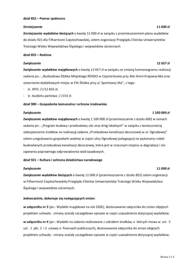 W czwartek 22 stycznia odbyła się nadzwyczajna sesja Rady Miasta Częstochowy, zwołana dzień wcześniej z uwagi na ogłoszenie planu pod tytułem ,,Przędzalnia przyszłości”. Choć na porządek obrad składały się de facto tylko trzy punkty dotyczące zmian w budżecie miasta w związku z przedsięwzięciem oraz samej woli przystąpienia do jego realizacji, to dyskusja na ten temat okazała się o wiele bardziej rozbudowana i temat szybko zszedł na kwestię nowego stadionu dla Rakowa, choć władze miasta wymieniają infrastrukturę sportową dopiero na piątym miejscu wśród planów zagospodarowania tego terenu. Poniżej przedstawiamy konkretne zmiany w budżecie, jakie zostały uchwalone podczas sesji.