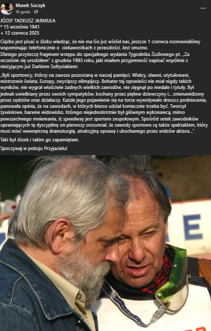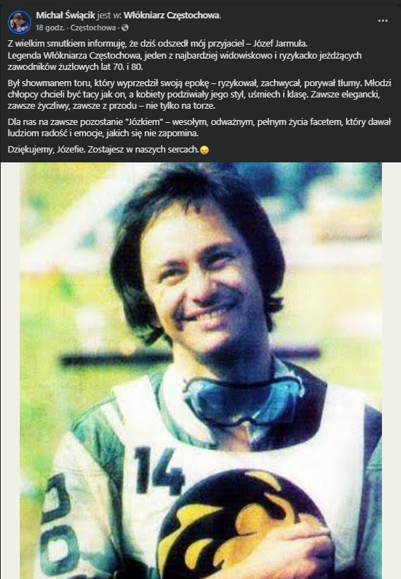 Fani Włókniarza liczyli na spokojniejszą dwutygodniową przerwę od startów ich ulubieńców. Niestety 12 czerwca środowisko żużlowe obiegła wiadomość o niespodziewanej śmierci Józefa Jarmuły, zawodnika biało-zielonych w latach 1974-1981. „Legenda naszego klubu, postać niezwykle charyzmatyczna, pionier swoich czasów. Sam o sobie mówił, że urodził się dla żużla za wcześnie. Człowiek utożsamiany z niesamowitą wolą walki, nieustępliwością i ambicją. Na jego mecze przychodziły rzesze ludzi. Tłumy chciały zobaczyć Jarmułę, postać, która wyprzedziła swoją epokę. Był jednym z liderów złotej drużyny Lwów z roku 1974.” – czytamy na oficjalnej stronie klubu. Wybitnego żużlowca żegna społeczność Włókniarza Częstochowa.