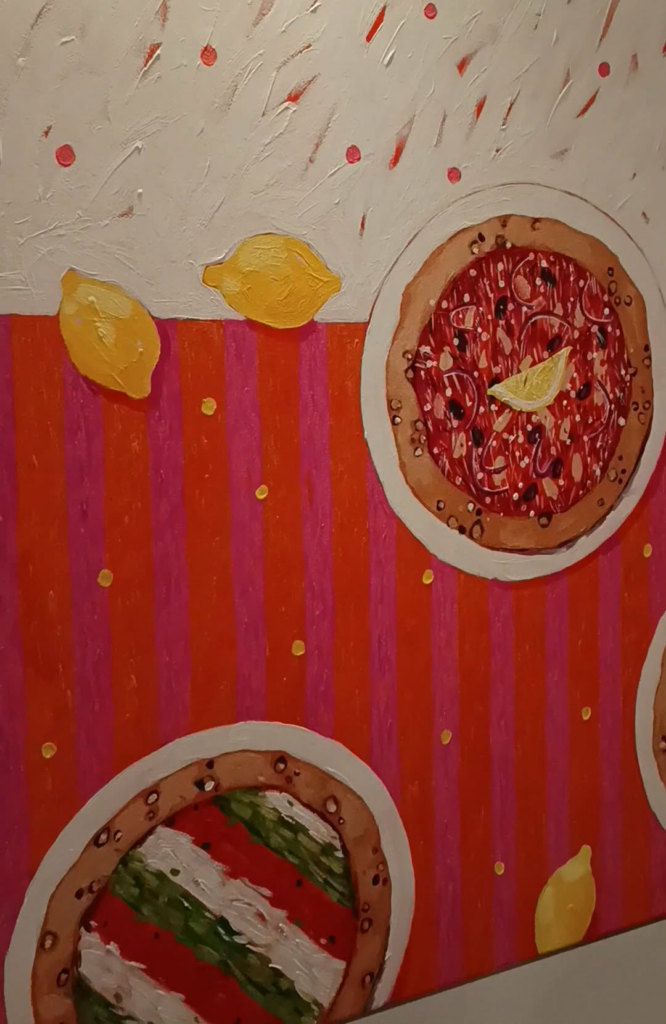 Tomek, którego malarska kariera rozciąga się przez Polskę, Włochy, Niemcy, Rumunię i Chiny, znowu pokazał, że potrafi zatrzymać emocję dokładnie w tym momencie, w którym napięcie jest najwyższe. Intensywna kolorystyka sprawiała, że człowiek miał wrażenie, iż zaraz usłyszy wiwat publiczności albo przynajmniej trzask tenisowej rakiety. Jego obrazy były jak wizualny zastrzyk dopaminy — w wersji dla tych, którzy wolą sport oglądać, niż w nim uczestniczyć (szczególnie w grudniowy wieczór). To, co na wernisażu robiło największe wrażenie, to spotkanie. Spotkanie dwóch temperamentów, dwóch narracji, dwóch sposobów patrzenia na świat — a jednak mówiących tym samym językiem: językiem koloru i pasji. W jednej części sali – światło południa, zapach morza i figi dojrzewające w słońcu. W drugiej – pot, wysiłek i ruch, który niemal wprawiał powietrze w drganie. A jednak te dwa światy splatały się ze sobą tak naturalnie, że odbiorca przechodził od jednego do drugiego bez żadnej dysonansowej zadyszki.