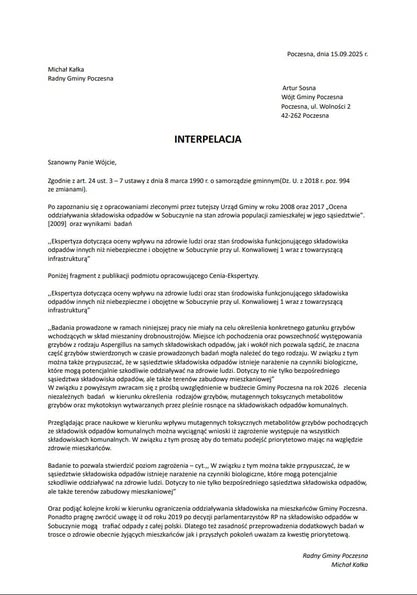 Jak dowiadujemy się ze świeżego wniosku radnego Michała Kałki jeszcze przed powstaniem wysypiska w gminie Poczesna już składowano odpady na terenach stawów, z których wcześniej wypompowywano wodę oraz odławiano ryby. Radny złożył wniosek o zbadanie archiwalnych danych, aby określić czas trwania i skalę procederu, a także interpelację o dokładne zbadanie zagrożenia dla zdrowia, jakie płynie ze składowiska odpadów.